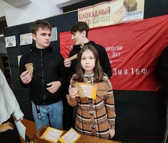 Еще раз вспомнили о роли ленинградцев, проявивших волю и мужество перед лицом смертельной опасности. А также приняли участие во Всероссийской акции «Блокадный хлеб». Завершилось мероприятие минутой молчания в память обо всех погибших и пострадавших в Великую Отечественную Войну.