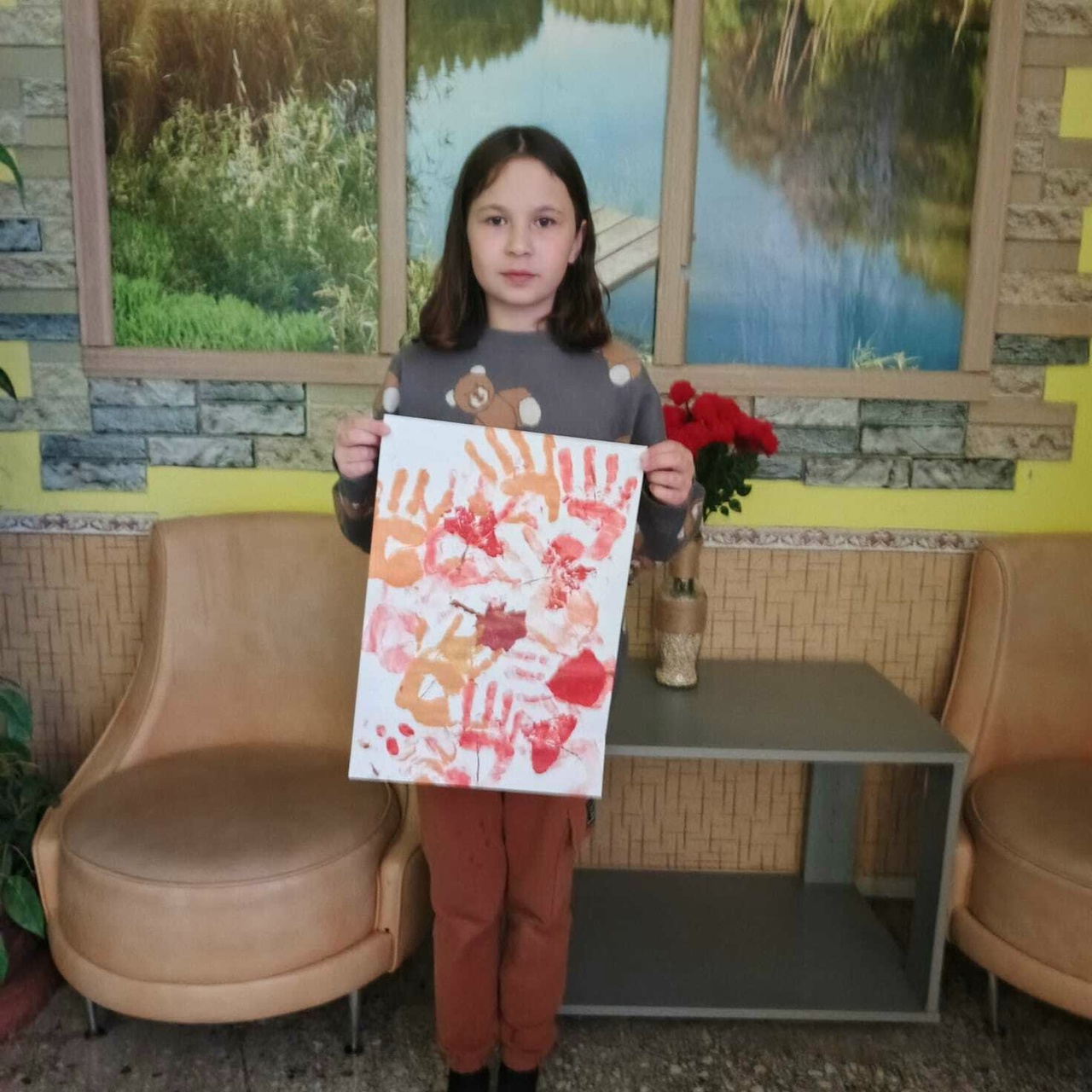 Сегодня воспитанница нашего Центра создала рисунок на тему: «Волшебная осень», с использованием нетрадиционного способа в рисовании: лепестков и веточек деревьев.