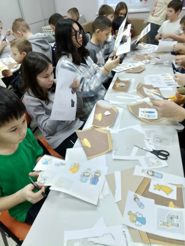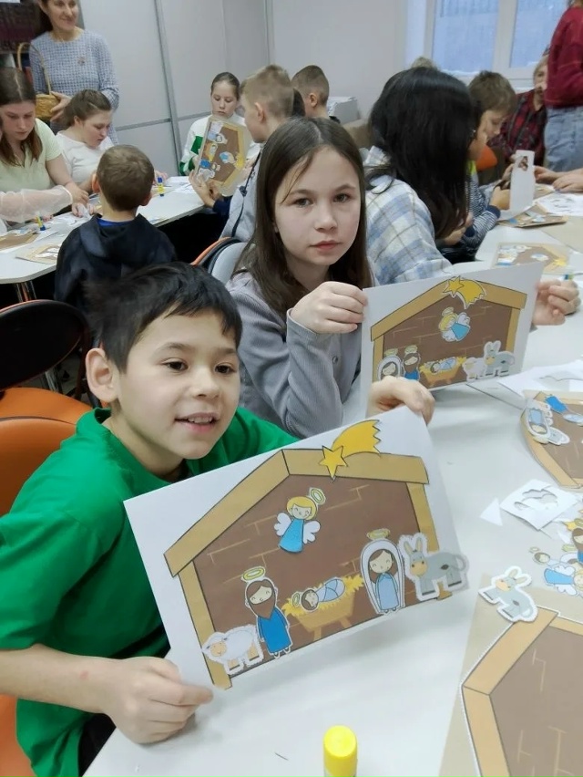 В познавательной программе «Рождества волшебные мгновения» ребята познакомились с историей рождения Иисуса Христа, затем поучаствовали в викторине. Самым интересным этапом был мастер – класс по изготовлению рождественского вертепа.