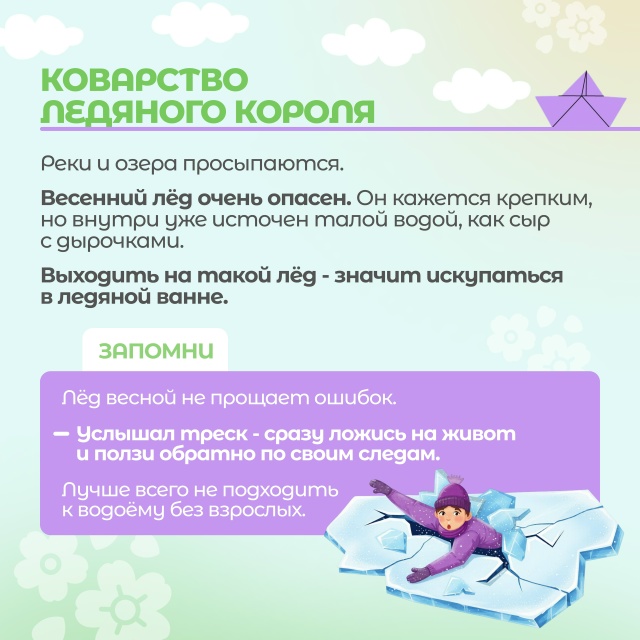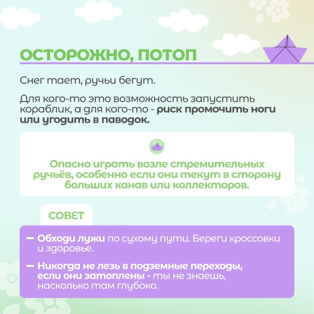 Мы подготовили для вас карточки с главными правилами безопасности в весенний период: