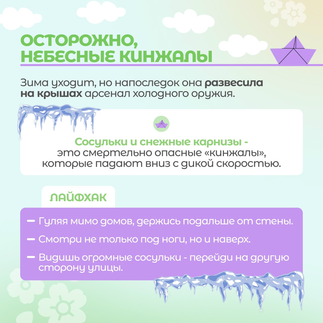 ❄как уберечь себя и детей от тающих сосулек