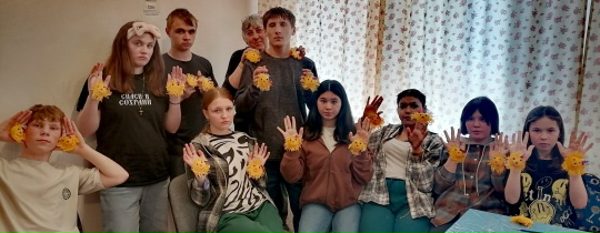 В ходе занятия ребята и взрослые создавали яркие поделки в виде солнышка, символизирующие тепло, свет и добро.