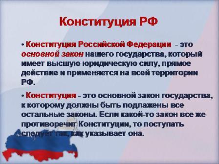 -Я считаю, чтобы это понимало подрастающее поколение, так как оно является будущим нашей страны. А знание прав и законов подрастающим поколением гарантирует свободную, демократическую и стабильную жизнь, в стабильном и развивающемся государстве. И конституция является самым лучшим доказательством этого.